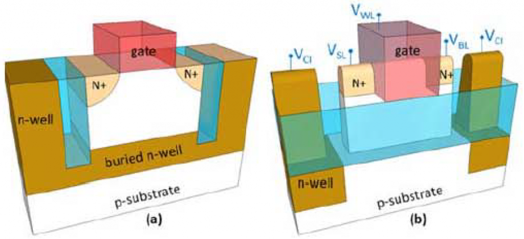 And it turns out that there was another nagging question – one of the little details that can sabotage a great new idea. The technology was originally implemented with a buried N-well below the transistor. This wasn’t – and isn’t – part of a standard CMOS flow. Yeah, it’s possible to change flows over time, but it’s super hard, and there better be a dang good payoff from it. Is a 1T SRAM cell enough to motivate that? Perhaps, but the other question to ask – and the one that Zeno asked – is, “Is that modification to the flow really necessary? What happens if we omit the buried N well. Will it still work?”