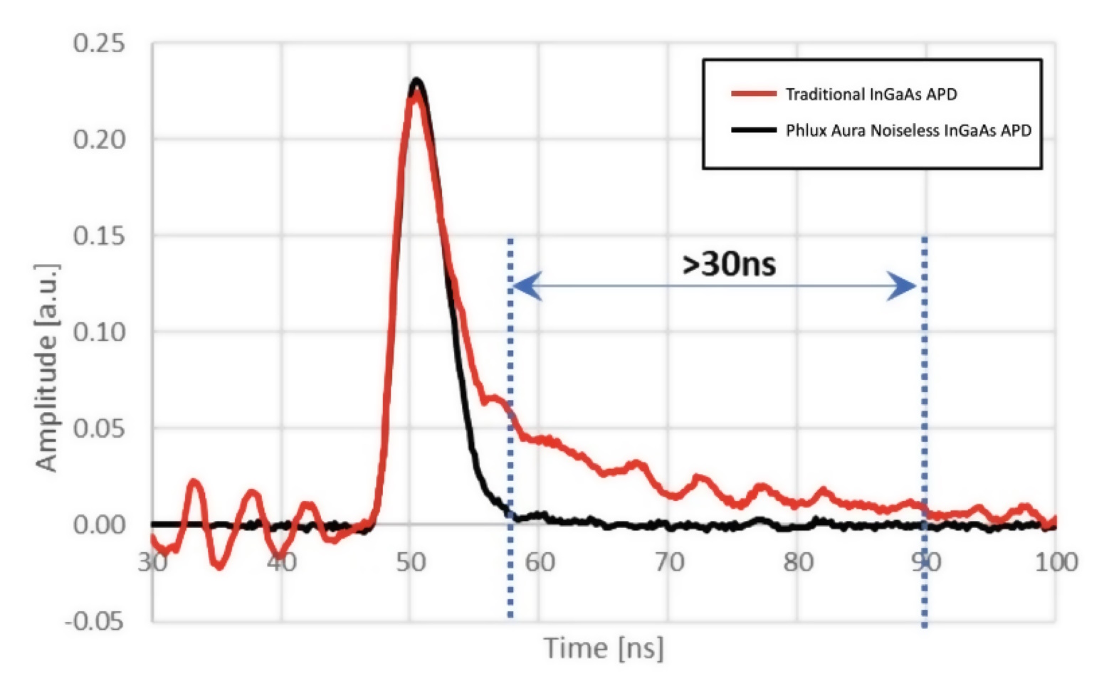 The recovery time of Aura Noiseless InGaAsSb APDs is much faster than their traditional InGaAs cousins (Source: Phlux Technology)