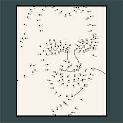 Dot-to-dots are a fundamental part of American kiddie culture. Maybe it’s universal; I don’t want to speak to things I know nothing about… (much). But at least here in the US, it’s a typical child’s pastime (or homework busywork to placate parents that don’t want their children wasting their time playing): a piece of paper has a few strategically-placed numbered dots. You fill in the missing information by supplying the path between the dots; the result should reveal an image that wasn’t evident at the start.