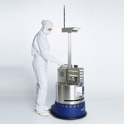 Roth & Rau-Ortner specializes in factory automation solutions and MetraLabs develops small, automated robots. And what was different about their new little pride and joy was how they had equipped it to get around – not only in a dirty warehouse, but, in fact, in a Class 1 cleanroom (the cleanest open-air category; after that, the clean areas are enclosed in the machinery).