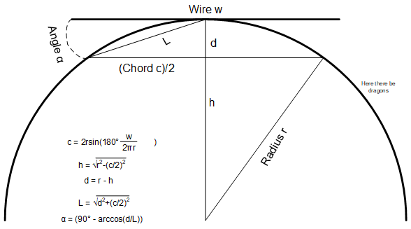 Figure 6. 1x-length wire on an arc of 10x radius. Negligible deflection.