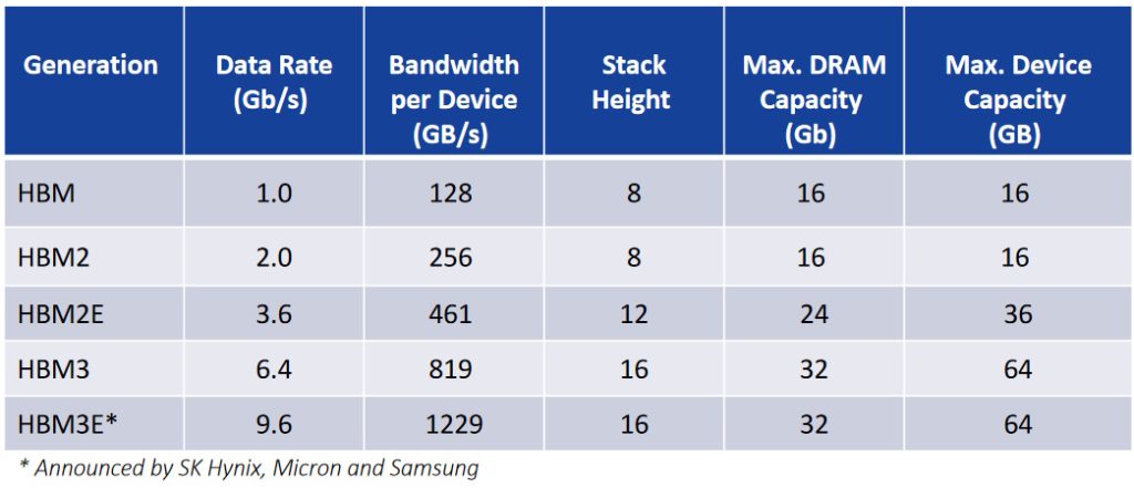 Why does this image have only “HBM3” annotations as opposed to “HBM3E”? I’m glad you asked. The reason is that the image was created prior to the HBM3E nomenclature being formally adopted as a standard (true to tell, it may still be only a de facto standard at the time of this writing, but that’s good enough for me).