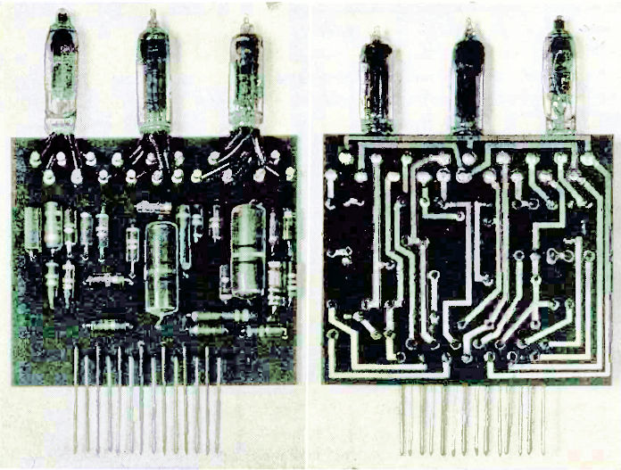 A tube-based Auto-Sembly circuit board created by the U.S. Army Signal Corps circa 1949. Image credit: Electronics Magazine