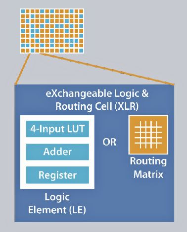 The Efinix XLR cell operates as a logic element or as a routing element. In certain cases, it can be both. Image credit: Efinix