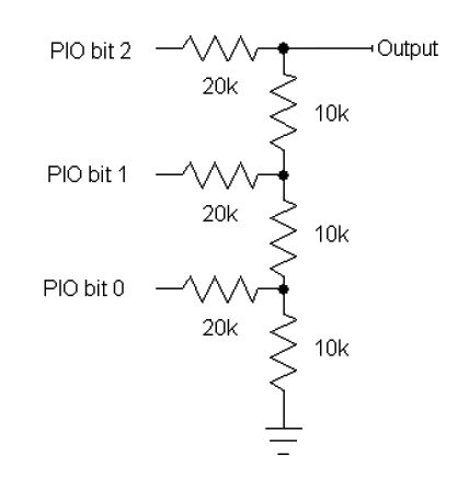 This 3-bit R-2R ladder DAC uses just three GPIO pins to provide the ID of the currently executing task. Image credit: Jack Ganssle