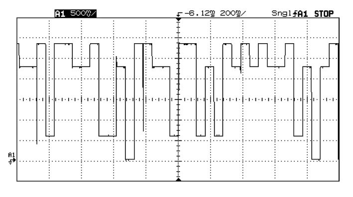 The output voltage from the R-2R ladder DAC provides an 8-level analog indication of the active task’s ID. You’ll get a waveform that looks like the one shown below.