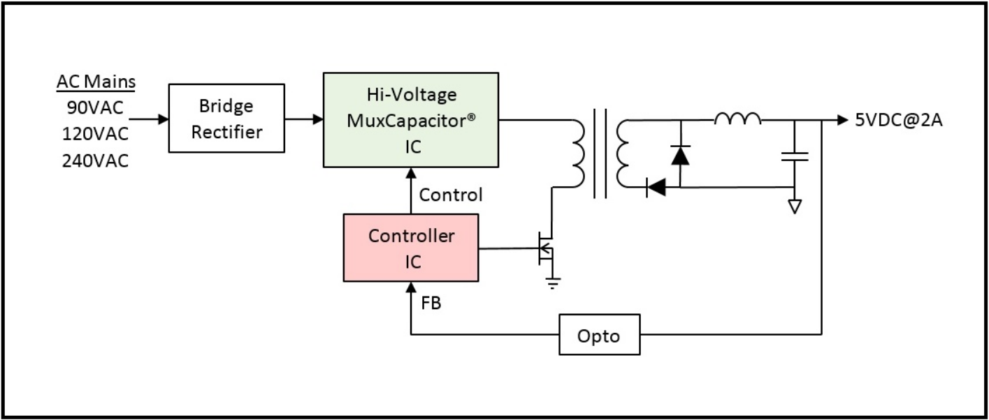 Obviously, two inductors would be involved in a transformer. The transformer both converts voltage and provides isolation between the primary and secondary sides. Let’s come back to the transformer thing in a minute. For now, circuits other than the transformer are where the MuxCap technology is leveraged.