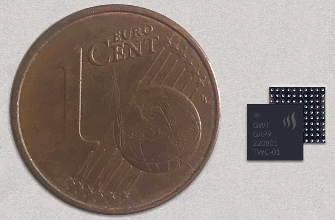 The GAP9 next to a Euro cent (Source: GreenWaves)