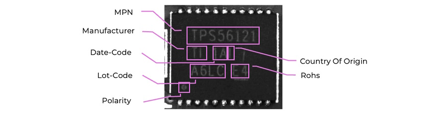 In the case of the top-side photos, ShieldScan’s AI-driven optical character recognition (OCR) and natural language processing (NLP) ensure unmatched accuracy in analyzing manufacturer markings, lot codes, date-codes, and compliance data.
