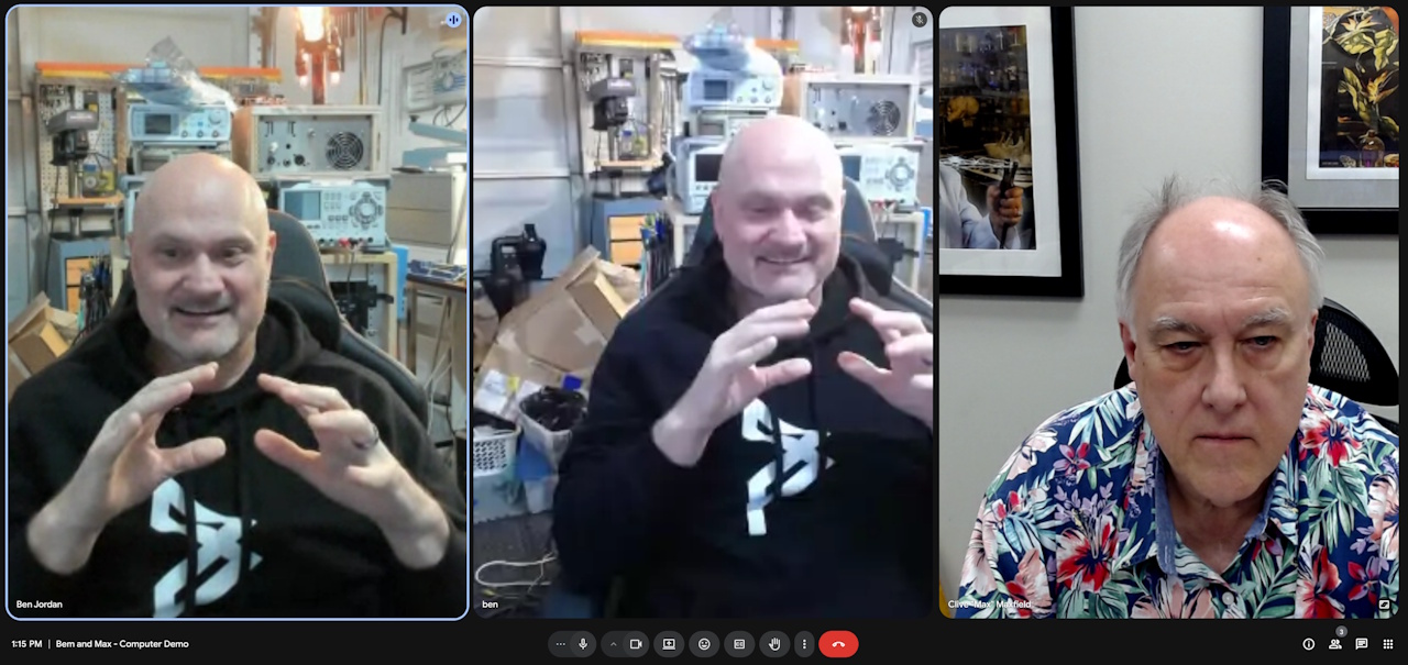 To allay any lingering doubts I might have, Ben joined our call again. I snapped a screenshot as shown below. One instance shows Ben on his main computer, while the other shows him on his Quilter SBC. “But which is which?” you ask. I no longer recall.