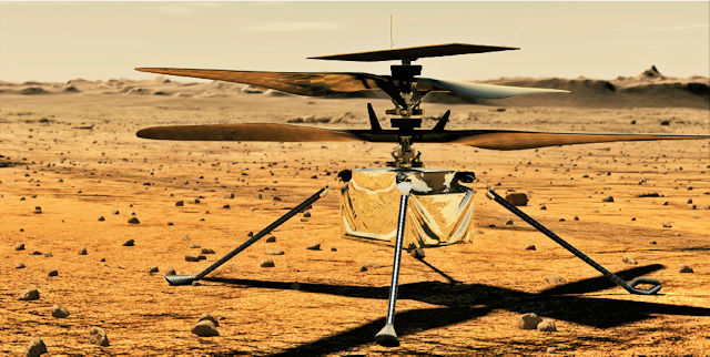 The 4-pound Ingenuity Mars helicopter stands only half a meter tall. Image credit (artist conception): NASAÂ