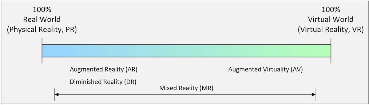 Now, just to make sure we’re all tap-dancing to the same skirl of the bagpipes, let’s remind ourselves of some of the terms involved in the reality-virtuality continuum as illustrated below.