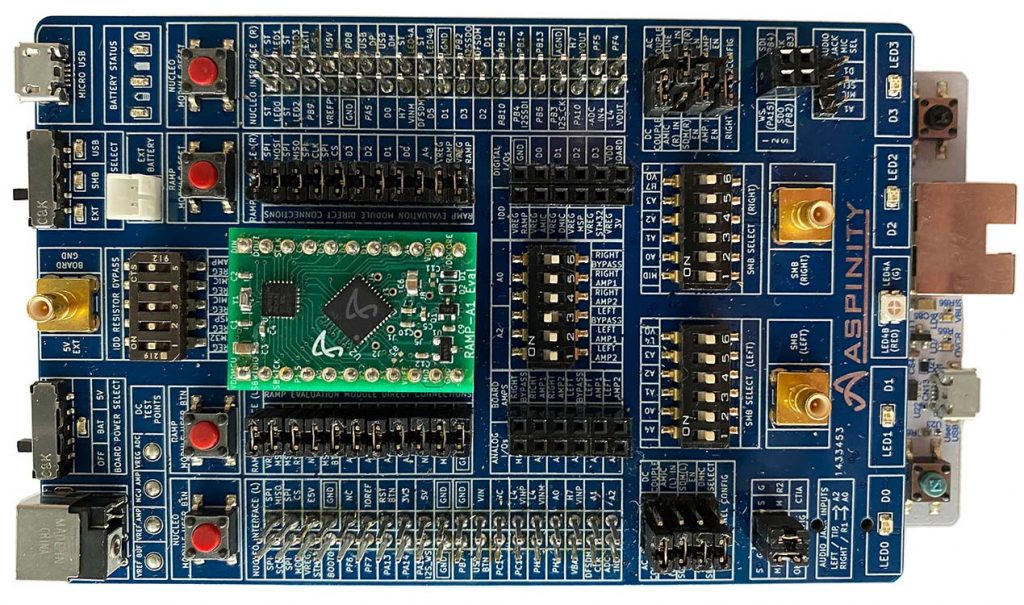 Now, this is where things can get a little confusing unless you pay careful attention (observe that at no time do my hands leave the ends of my arms). In January 2020, the folks at Aspinity announced their Voice Activity Detection Evaluation Kit in the form of the EVK2. This little rascal provides a front-to-back solution for analog voice activity detection and system wake up using the analogML core via the EM1 BOB.