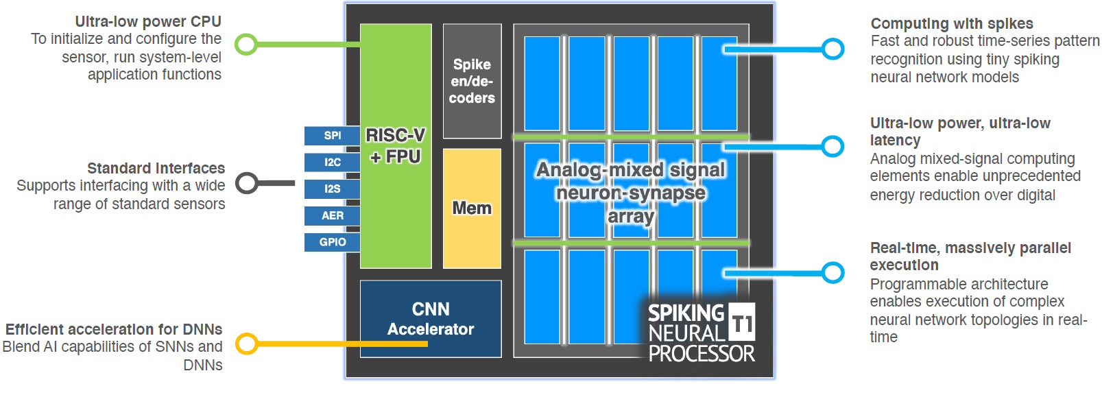 Block diagram of the T1 spiking neural processor (Source: Innatera)