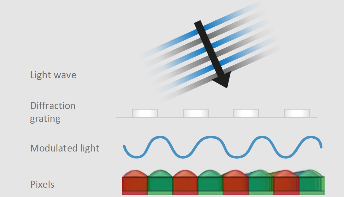 Jean-Sébastien says that they’ve successfully implemented this TDM on sensors from multiple vendors. Now, this is where things start to get clever. As the light passes through the diffraction grating, it’s modulated before it lands on the underlying pixels, where this modulation encodes depth information.