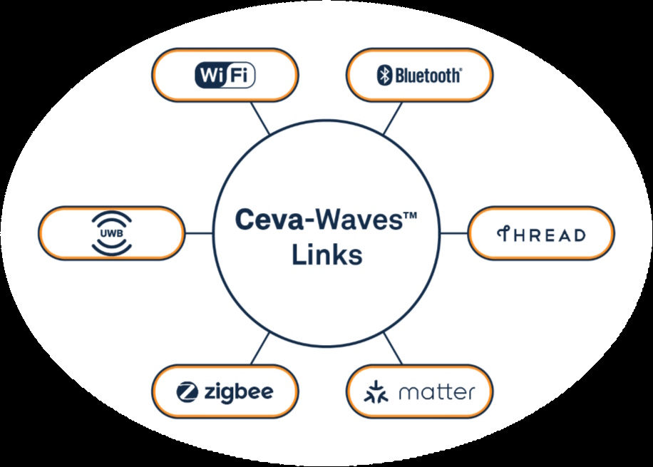 Ceva-Waves Links leverages the industry-leading Ceva-Waves Wi-Fi, Bluetooth, IEEE 802.15.4 (for Thread / Matter and Zigbee) and Ultra-Wideband (UWB) IPs to offer integration-friendly wireless solutions to accelerate the development of connectivity-rich SoCs.