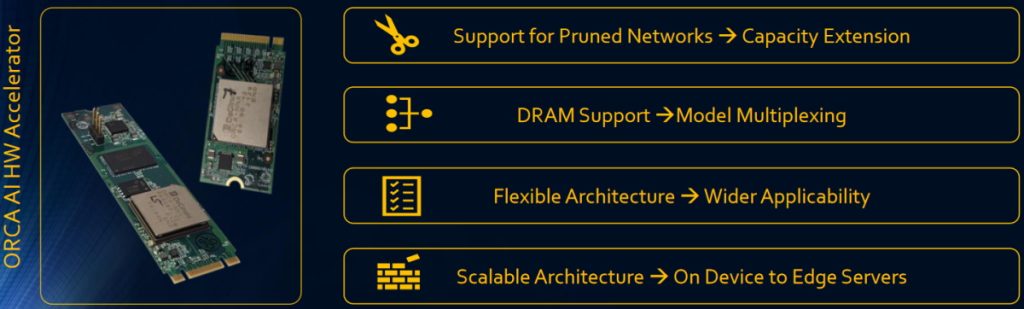 This is when they started to batter me with information pertaining to the ORCA-NNX, which—I now know—supports vision models and speech models (and other models), large models and small models, pruned models and dense models, floating-point models (Float32) and quantized models (Int8), and that’s just the beginning. In addition to DRAM support, along with PCIe and USB interfaces, ORCA-NNX also supports efficient model multiplexing, multi-camera real-time performance, and multi-chip scaling, where the latter means you may run one or two (or more) ORCA-NNX accelerators in an edge device, or even more ORCA-NNX accelerators in an edge server, all without changing the software.