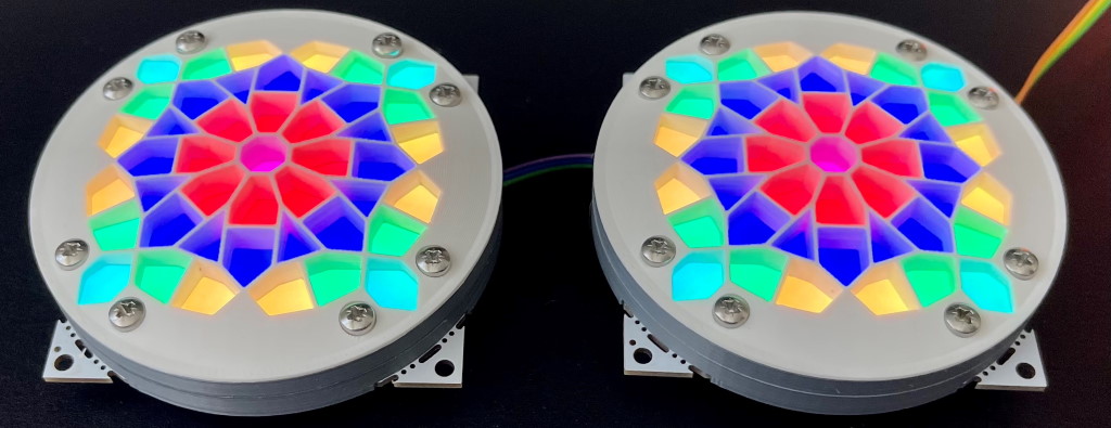 SMADs are 80 x 80 mm boards with 45 tricolor LEDs that can be used for lots of things, including representing robot eyes.