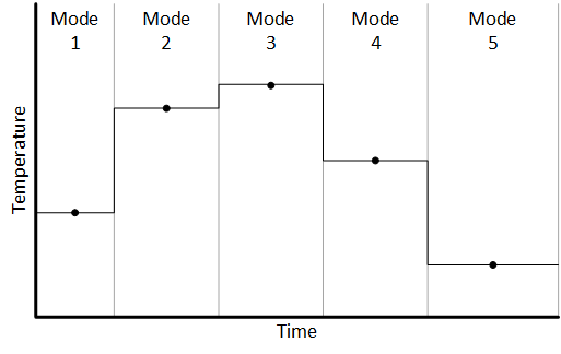 You can look at the specific trajectory of the thermal response as you move from one mode to another, but you’d have to concentrate more points around the mode transition so that you can see the temperature move as it happens.