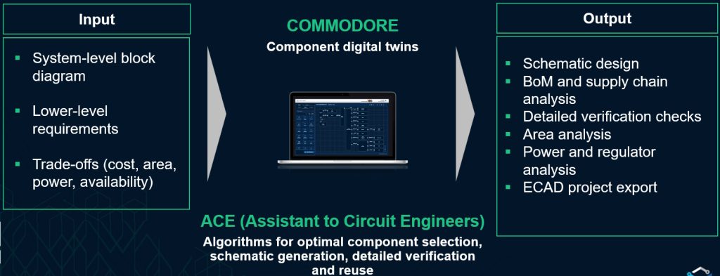 There are two key items “under the hood,” as it were. First, we have COMMODORE, which is a library of digital twins for components. Anything you can read in a data sheet is captured as part of the digital model. Next, we have Assistant to Circuit Engineers (ACE). This little scamp looks at your system-level block diagram, accesses any appropriate digital twins, considers, compares, and contrasts billions of component combinations, and outputs a schematic that meets your design goals and tradeoffs. Just to add a great big dollop of metaphorical cream on top of the allegorical cake, ACE also generates a BOM and supply chain analysis, area analysis, power and regulator analysis, and it performs detailed verification checks. The schematic can subsequently be fed to a PCB layout tool from the vendor of your choice.