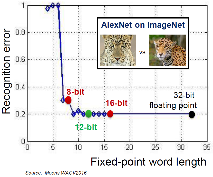 Within that fixed-point domain. Cadence can do 8-bit (1 TMAC/s) or 16-bit (512 GMAC/s), again, at 16 nm. But Synopsys has data showing that 8 bits can result in too many recognition errors, while 16 bits may be overkill.