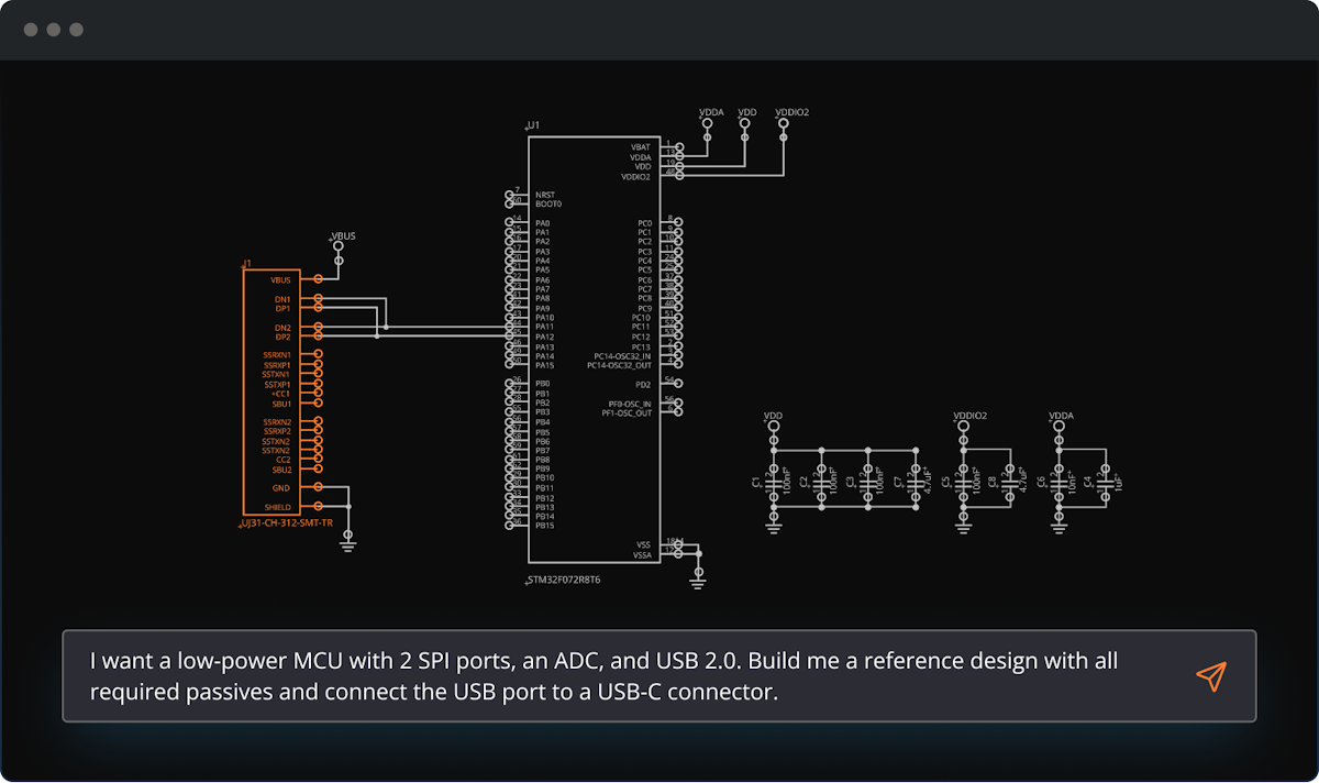 As they say at SnapMagic, the goal is to use natural language to interact with your circuit—that is, to give you the ability to chat with your circuit board design in the same way you’d chat with your co-workers. You can even automate entire schematics from scratch. A couple of examples are shown below.