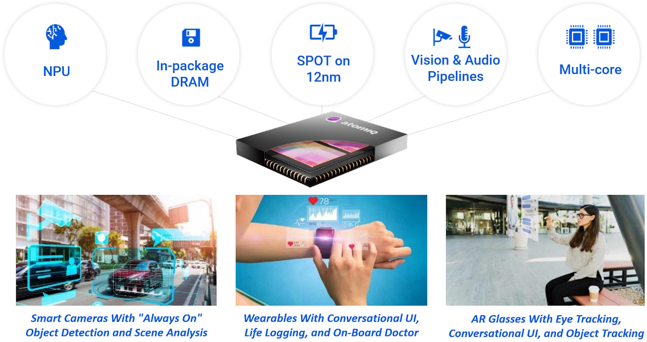 Atomiq is explicitly designed for this new reality. By combining SPOT’s ultra-low-voltage operation with highly parallel AI compute and system-level innovations in memory and power management, it enables what has long been promised but rarely delivered: meaningful AI inference on tiny, continuously running, battery-powered devices.