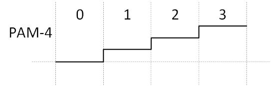 This format is known as PAM-4*. “PAM” stands for pulse-amplitude modulation, and the “4” means four levels. We’ll go through a little review for those of us (like me) that aren’t completely steeped in this stuff.