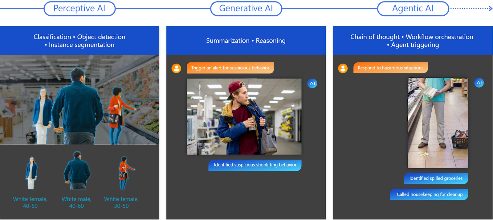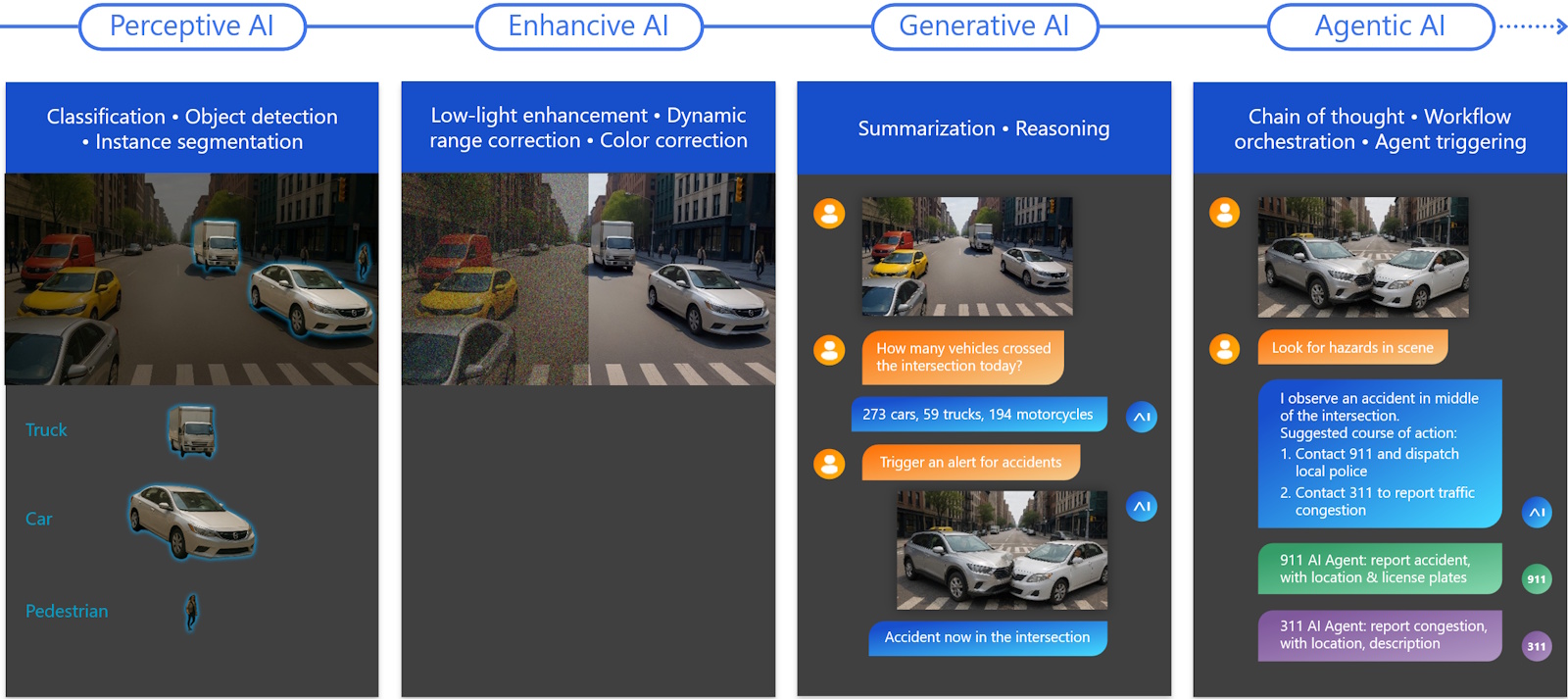 On top of this, AI is transmogrifying in ways that are awesome to behold. It’s now common to talk in terms of “Perceptive AI” (segmentation, detection, identification, classification…), “Generative AI” (summarization, reasoning…), and “Agentic AI” (chain of thought, workflow orchestration, agent triggering…).