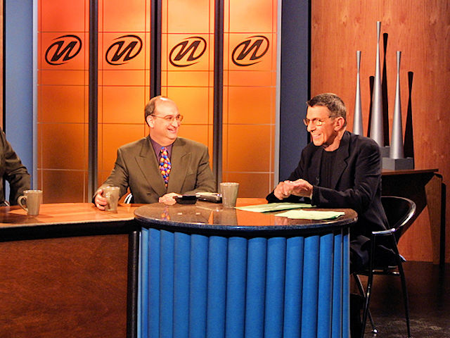 Bantering on the set of “The Next Wave with Leonard Nimoy” in 2001. (Shot with a Sony Digital Mavica camera directly to a 3.5-inch floppy disk.)