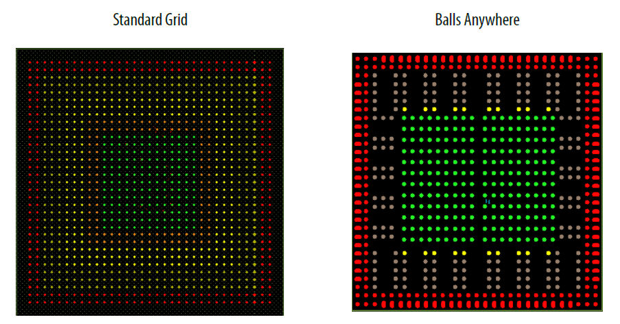 Standard Ball Grid versus “Balls Anywhere” packaging for the Intel Agilex 5 FPGAs and SoCs. Image credit: Intel