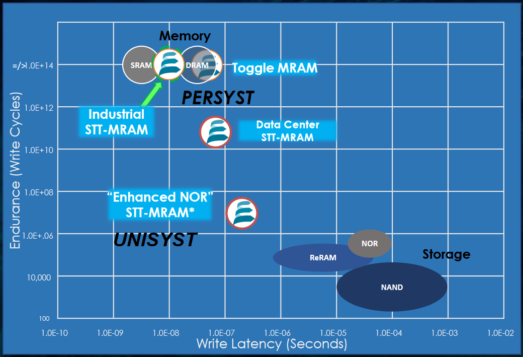 Next, we have UNISYST Enhanced NOR SST MRAM, which is targeted at unified code and data memory applications. UNISYST is currently in design.