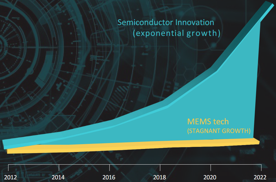 Looking into the problem further, Eric saw how MEMS-based LiDAR systems were starting to grab traction because they were smaller and lower cost, but they came with their own issues. In turn, this caused Eric to contemplate the fact that if one were to think in terms of innovation, then—over the past decade or so—semiconductor innovation has seen exponential growth, while MEMS innovation has been essentially flat (the last real “OMG” innovation in MEMs space took place around 2012).