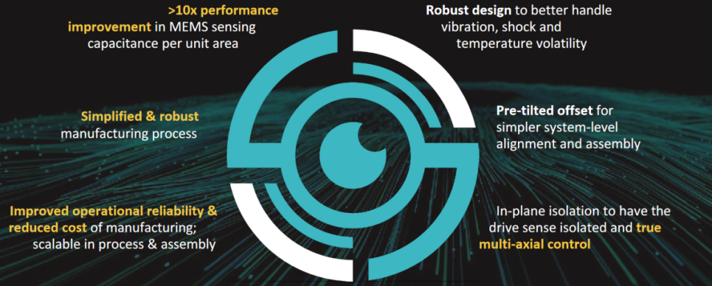 The first thing they did was to build a very powerful actuator, which they achieved by improving the capacitance per unit area. In other words, we’re talking about energy density—how much more energy they could pack over a surface area as compared to what’s available in the market. The result is 10 times better than anything else that’s available. Also, they included in-plane isolation to fully decouple any voltage applied to the actuating element from the sensing elements. Even better, they have the ability to implement pre-tilted offsets to the mirrors, which dramatically simplifies system-level alignment and assembly, thereby significantly lowering system cost.