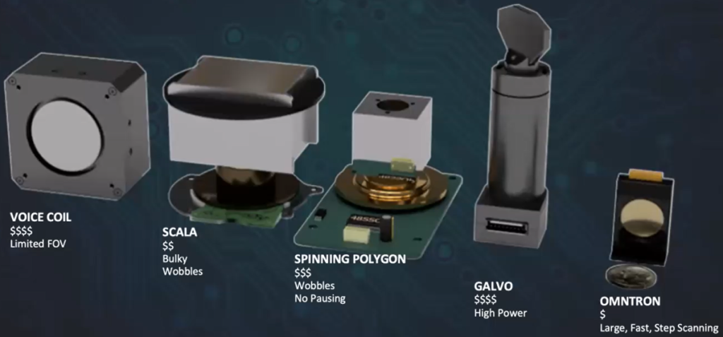 Going down the line, all of the other existing options exhibit various disadvantages, including high cost, tendency to wobble, no ability to step, or high power. And then we come to the Omnitron mirror on the right. This is large with respect to its mirror (15mm diameter) but not to its overall size, it’s fast and supports step scanning, and it is much more affordable than its legacy competitors.