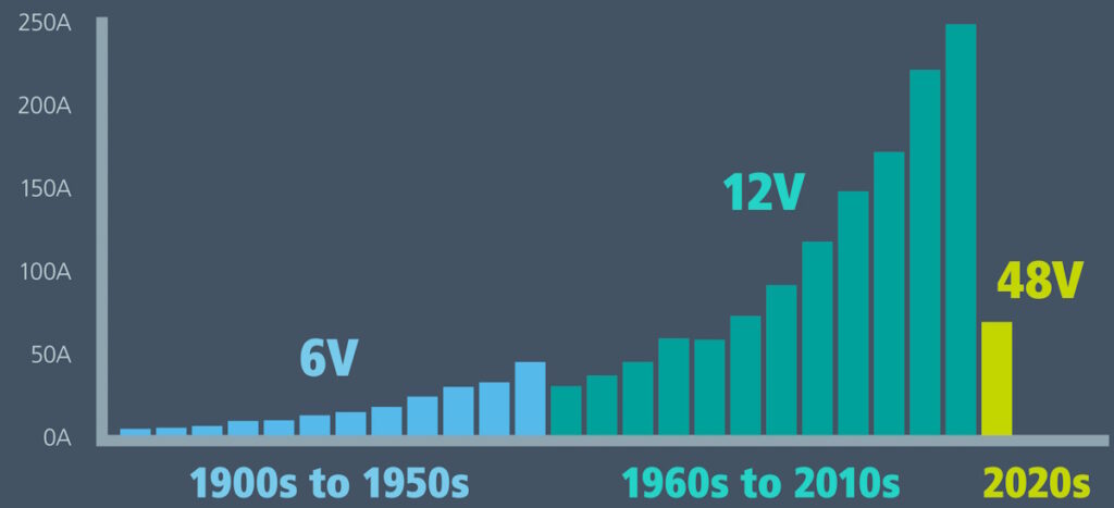 The current draw in today’s automobiles necessitates 48V