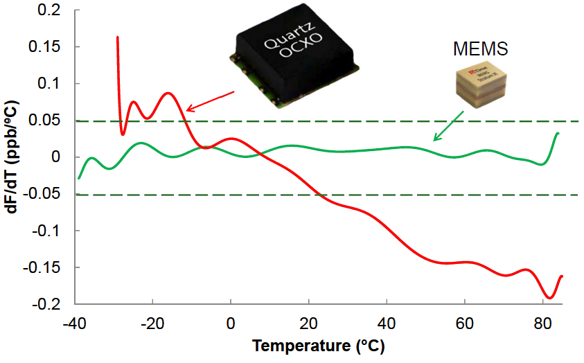 All of these applications have system components that are exposed to the elements – or at the very least, they don’t get the comfort of a nice, climate-controlled room. So they’re going to see temperature (and other) variations, and, if we focus on the physics of whatever is doing the resonating, we know that temperature has an impact on frequency. By changing physical dimensions or material properties, the resonant frequency will move. So how do you counter that?