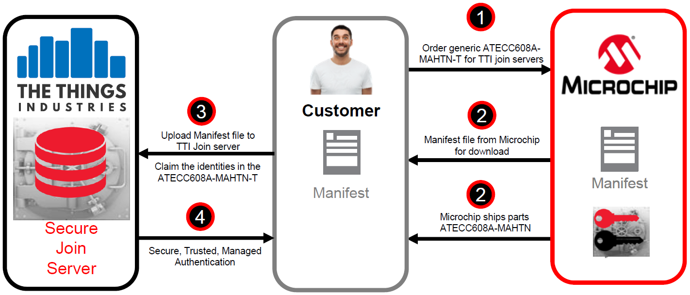 While we slogged through some details here, end users and even edge-device manufacturers mostly aren’t exposed to those details. The following image from Microchip summarizes the purchase-and-manufacturing steps needed. The rest of the details are handled by the technology.