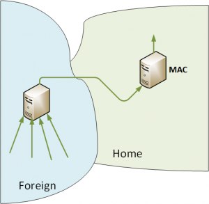 When this happens, data transmission pauses while a new connection is established with the new tower. Including new encryption keys. Once that’s all set up, then data transmission can resume. But with passive roaming, your packets still have to get to your home server – that server still owns the MAC functions. I’m probably fudging a bit on the details here, since this “new connection” thing sure feels like it would involve MAC stuff. So… don’t take me too literally here (or don’t take too many punches at me). (If it’s absolutely correct, on the other hand, then feel free to consider me brilliant. I’ll roll with it until proven otherwise… which might not take long…)