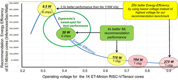 As the name implies, the ET-SoC-1 ML inference chip is designed to provide superior power/performance results when executing ML inference workloads. It does this through economical circuit and logic design and specialized, low-voltage power-supply design techniques.