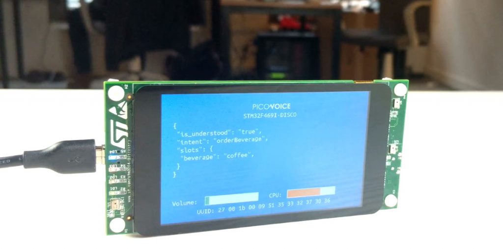 Picovoice running on an STM32F469 discovery board from STMicroelectronics (Image source: Picovoice.ai)