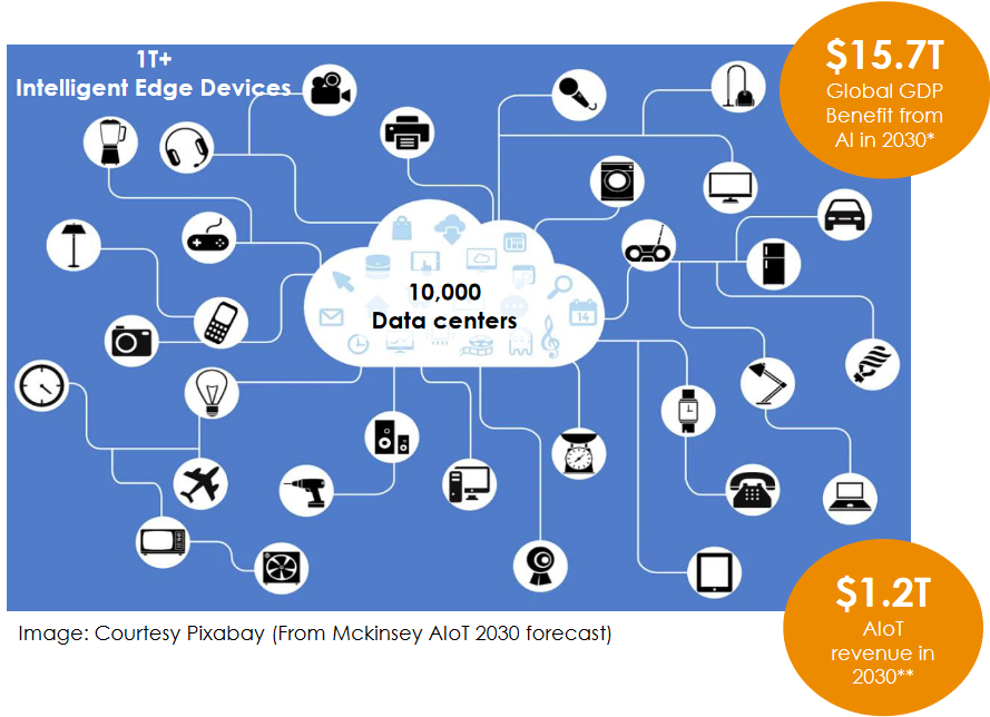 If big problems lead to big opportunities, then big opportunities come with some big challenges. Consider that the folks at PwC project that the impact of AI on global GDP by 2030 will be around $15T. Obviously, that’s not going to all come from the cloud—it’s reasonable to assume that the anticipated 1T+ intelligent edge devices may have something to do about it.