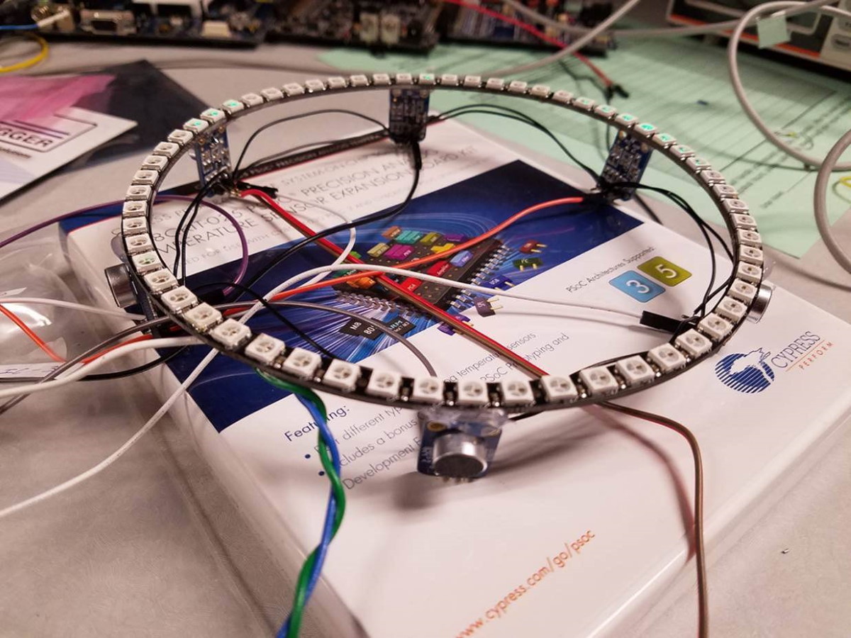 A ring of 60 tricolor LEDs with six microphones, all powered by a PSoC (Image source: Sree Harsha Angara)