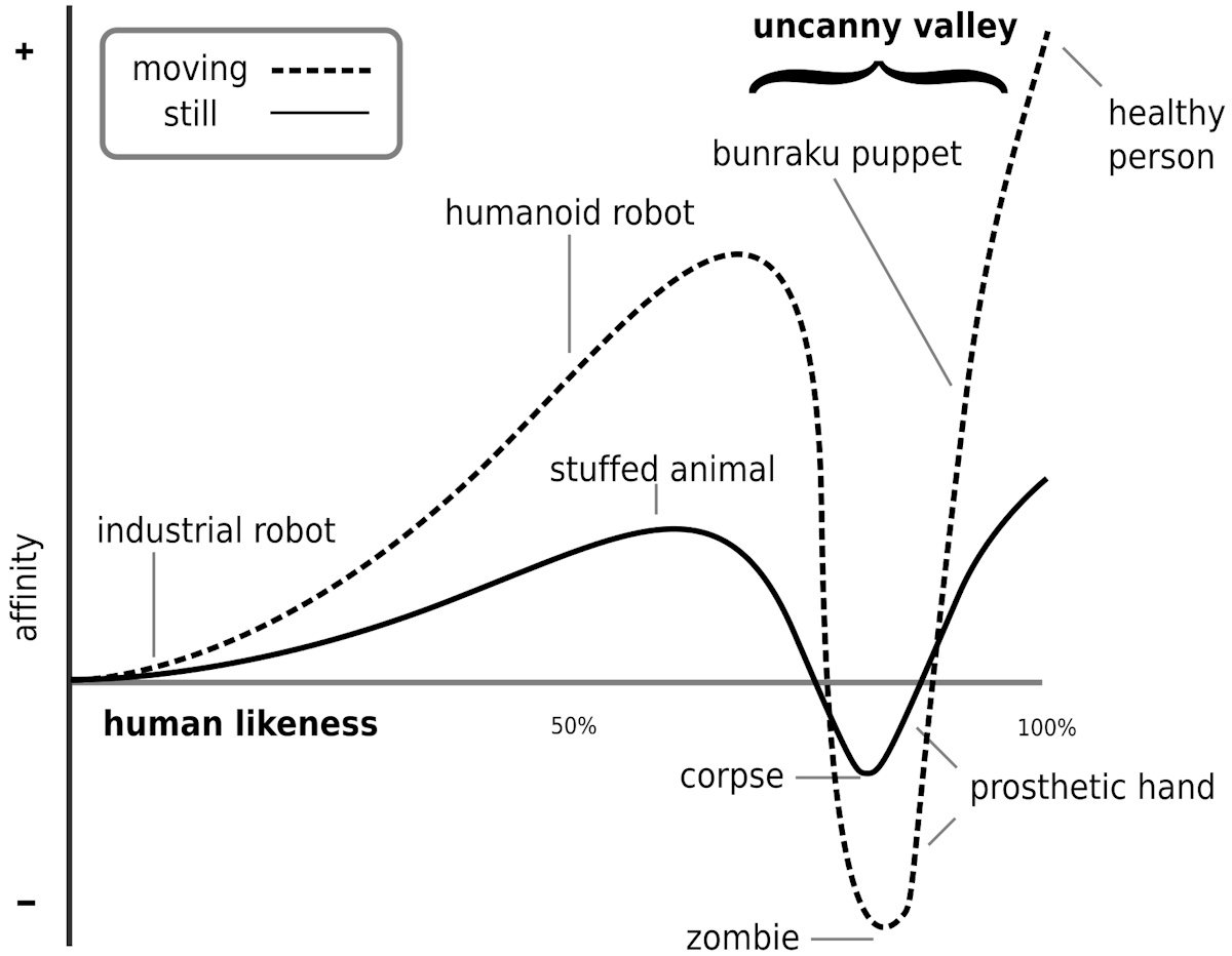 Have you ever found yourself in the “Uncanny Valley”? As related to robotics engineering, Japanese roboticist Masahiro Mori first introduced the concept in 1970 in his book titled Bukimi No Tani. According to the Wikipedia: