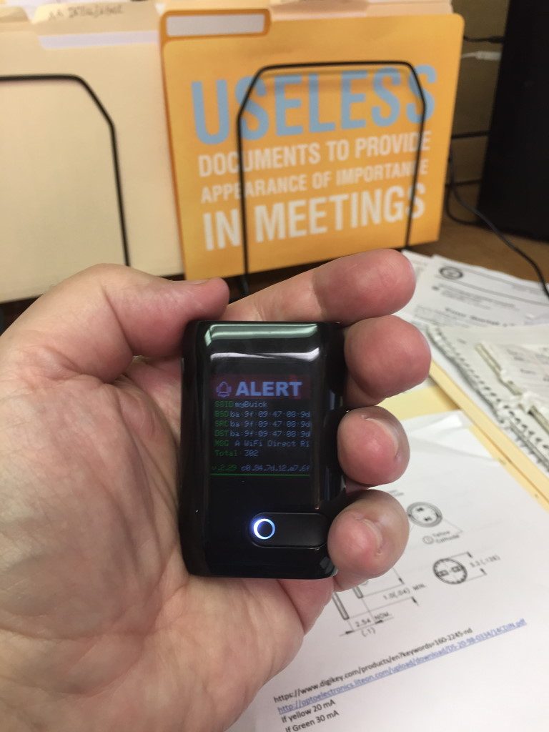 Most of the time, my WifiWall Traveler just buzzes and displays alerts if it detects anything that looks suspicious (as you can see from the photo I just took, it’s spotted 302 dubious players since I left home this morning.) But if it detects an attack on one of my systems — like my iPhone, for example — it will immediately leap into action, sending a Channel Switch 802.11 command instructing the iPhone to kill its Wi-Fi connection, thereby blocking the attack and preserving the integrity of my data and my system.