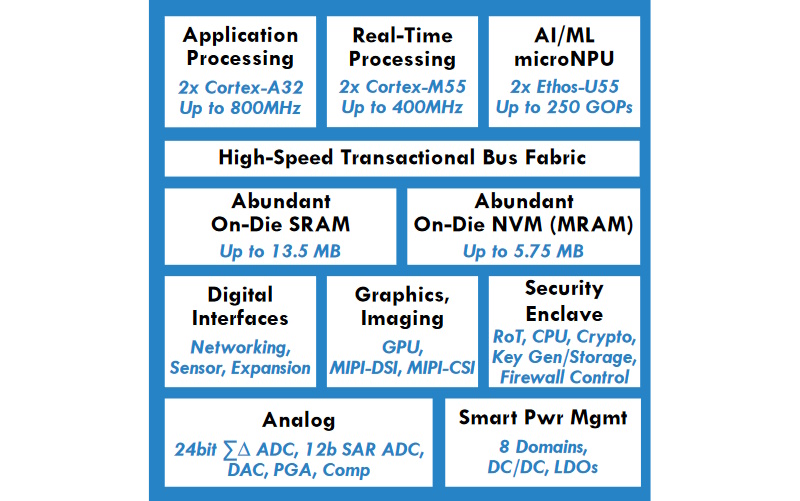 In a crunchy nutshell, Alif’s mission was to provide highly integrated processors enabling intelligent end-point applications requiring: