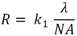 Clearly, the smaller the impinging wavelength λ, the smaller R will be. But let’s just say that EUV has had somewhat of a longer gestation than anyone expected. So, for the moment, we’re stuck at 193 nm. That equation might suggest that miniaturization would come to a halt, except for that denominator thing: the numerical aperture (NA). This is a property of the medium through which the light travels as completes its last leg onto the wafer. If you can make that bigger, then it provides another knob for reducing R.