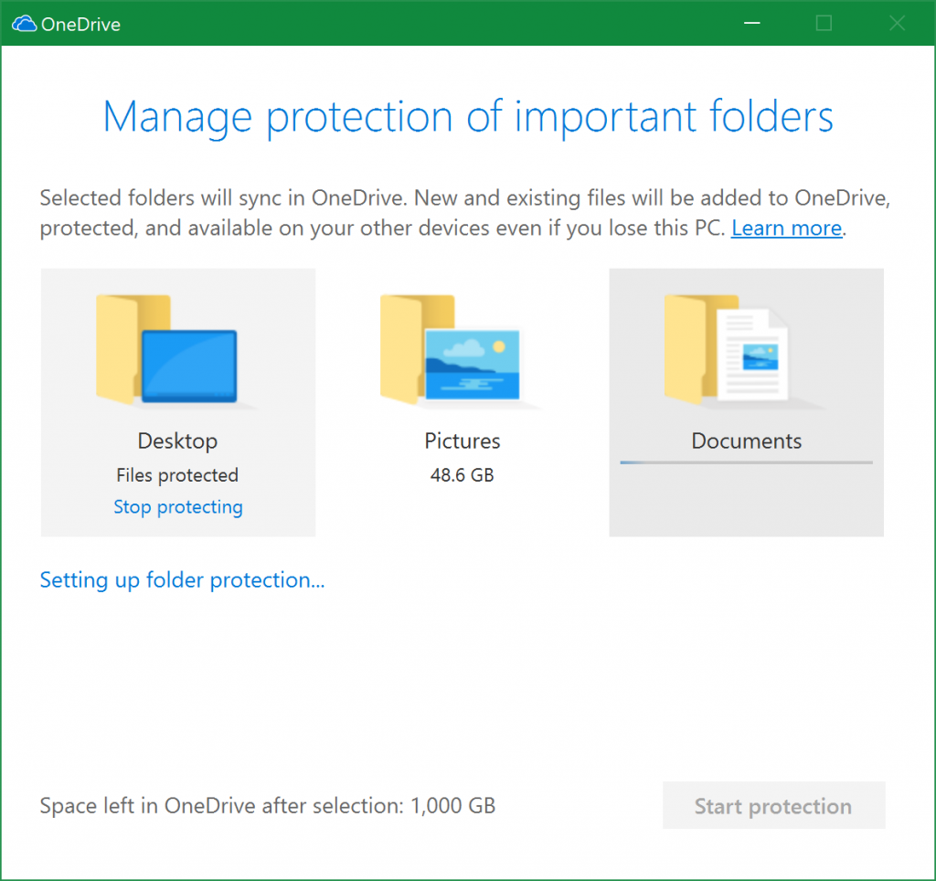 Windows 10 makes this seductively easy. There are three big fat buttons already configured for storing everything in your ‘Documents’ folder, your ‘Pictures’ folder, and your ‘Desktop’ folder, respectively. This is when the first tiny alarm bell went off in my head. Why are there no corresponding buttons for Videos, Downloads, or Music? How do those get stored or saved? Oh, well, I’m sure Microsoft knows what they’re doing. I click the big buttons and wait as OneDrive starts the massive process of uploading nearly everything on my PC to my OneDrive account. After that, it’ll keep my local copies synchronized with their cloud-based counterparts. Easy!