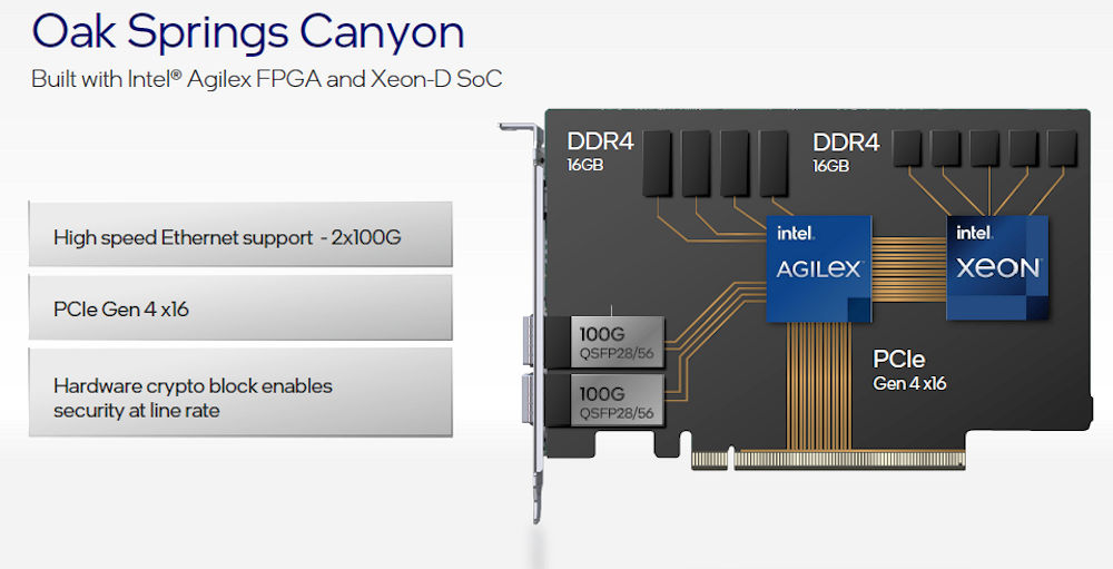The Intel Oak Springs Canyon IPU is based on an Intel Xeon-D CPU and an Intel Agilex FPGA. Image Credit: Intel.