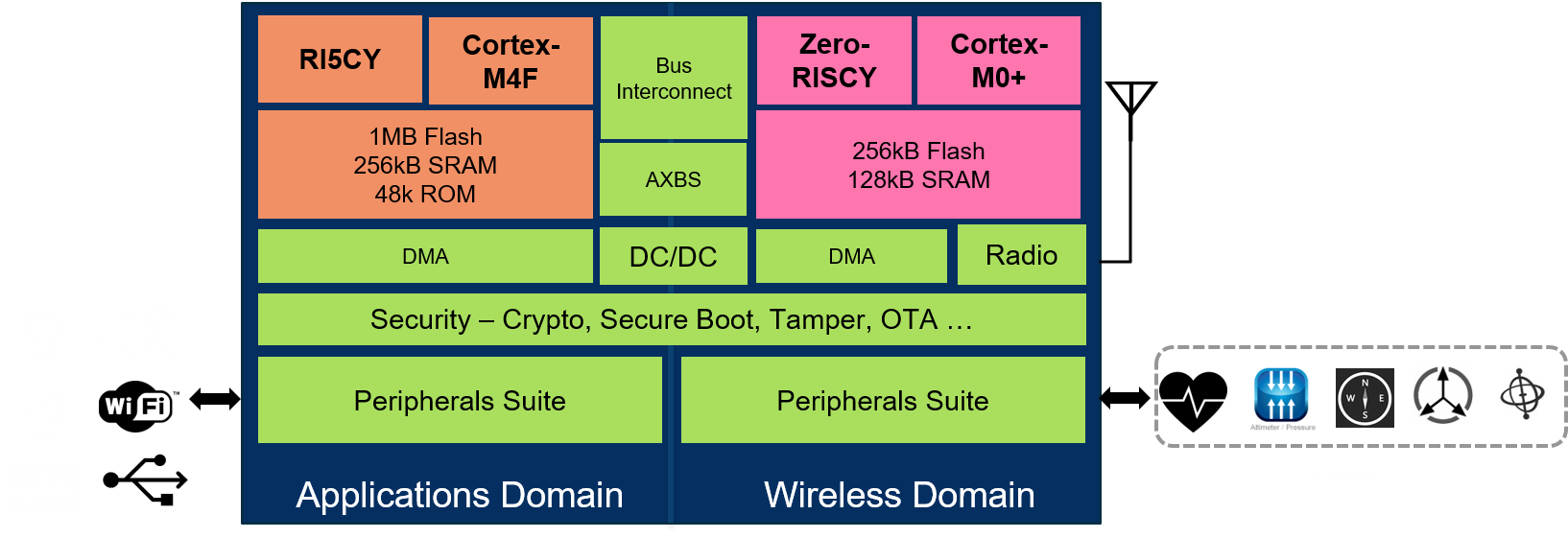 The board also supports a range of wired connections, including USB 2.0 and a variety of other interconnects like UART, I2C, and SPI. They’ve layered in security, giving each chip a unique 80-digit ID number and access control to flash. CRCs, cryptography functions, and true random number generation (TRNG) are implemented in low-power hardware.